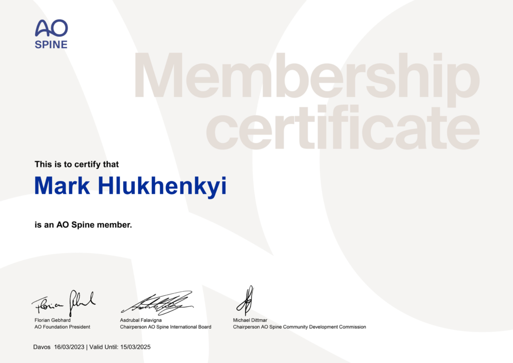 - Member of the Ukrainian Association of Neurosurgeons (UAS)